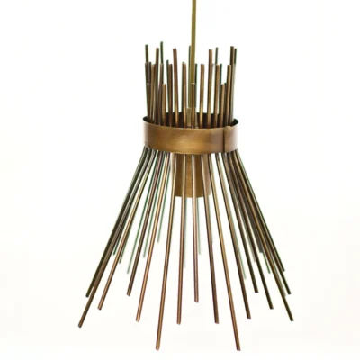 Το πεντάφωτο φωτιστικό με σιδερένιο μπρούτζινο χρώμα συνδυάζει κομψότητα και ζεστασιά, ιδανικό για σαλόνια, τραπεζαρίες ή γραφεία. Με διάσταση Φ35cm x 90cm, διαθέτει πλέγμα μπρούτζινου χρώματος και καφέ καλώδιο για vintage αίσθηση. Οι πέντε ντουί E27 υποστηρίζουν λαμπτήρες έως 40W, προσφέροντας επαρκή φωτισμό και ευελιξία. Κατασκευασμένο από μέταλλο, είναι ανθεκτικό και ιδανικό για μακροχρόνια χρήση.