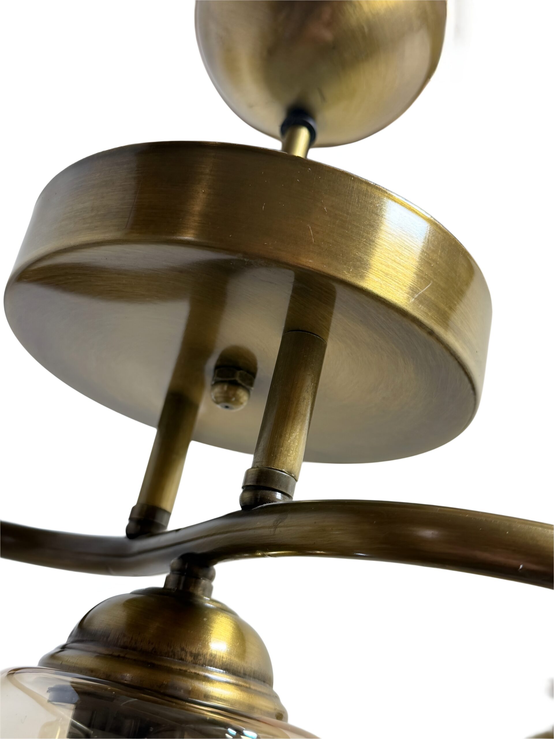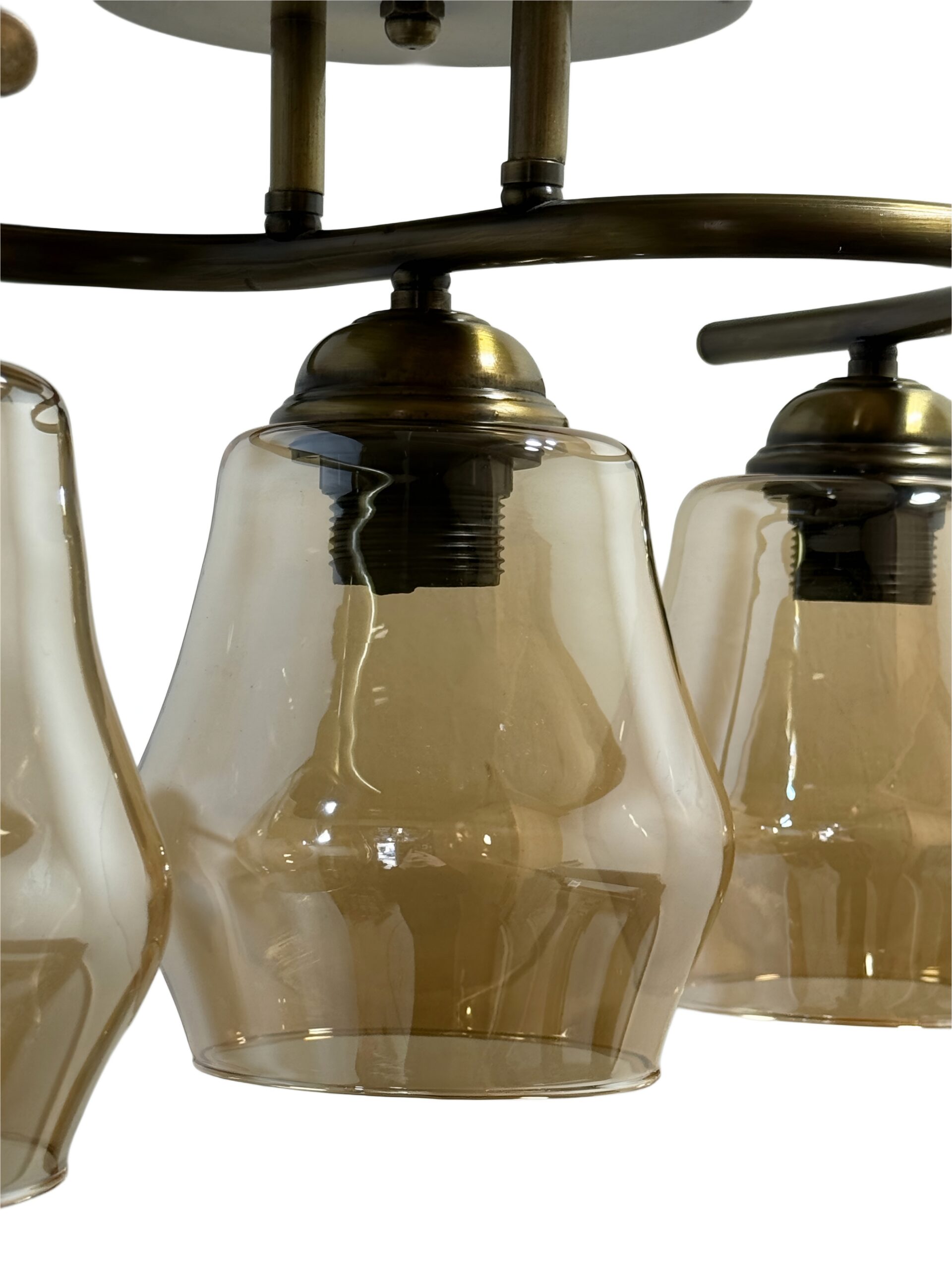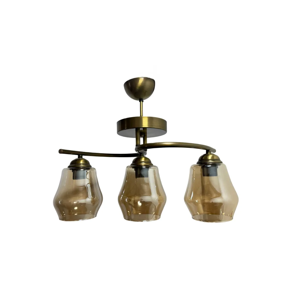Αναβαθμίστε την αισθητική του χώρου σας με ένα φωτιστικό που ισορροπεί ανάμεσα στον κλασικό και τον βιομηχανικό σχεδιασμό. Διαθέτει μεταλλικό σκελετό σε απόχρωση αντικέ μπρούτζου και τρία κομψά καπέλα από μελί (amber) ημιδιάφανο γυαλί, που δημιουργούν μια μοναδική, ατμοσφαιρική διάχυση του φωτός.