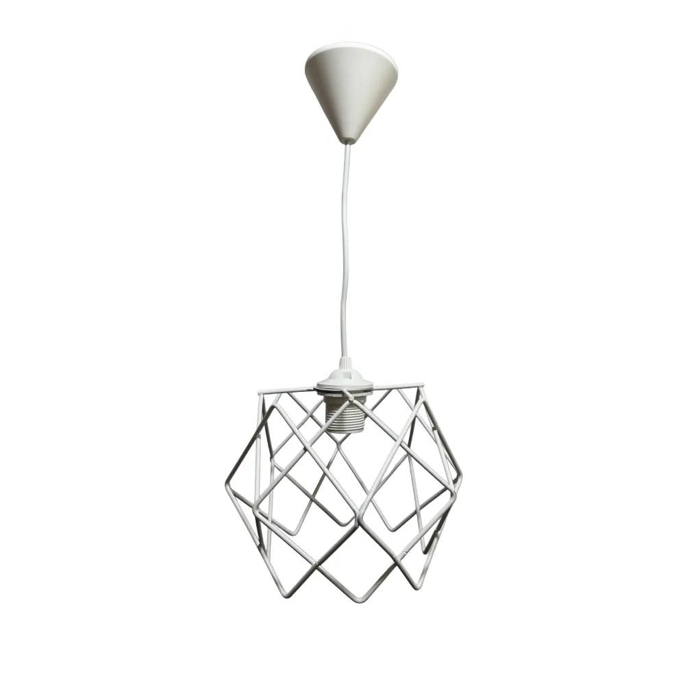 Ανανεώστε την αισθητική του χώρου σας με το κρεμαστό φωτιστικό μονόφωτο σιδερένιο Με έμπνευση από το βιομηχανικό design, αυτό το φωτιστικό συνδυάζει την απλότητα του λευκού μετάλλου με έναν εντυπωσιακό γεωμετρικό σκελετό που δημιουργεί μοναδικές σκιάσεις στον χώρο.