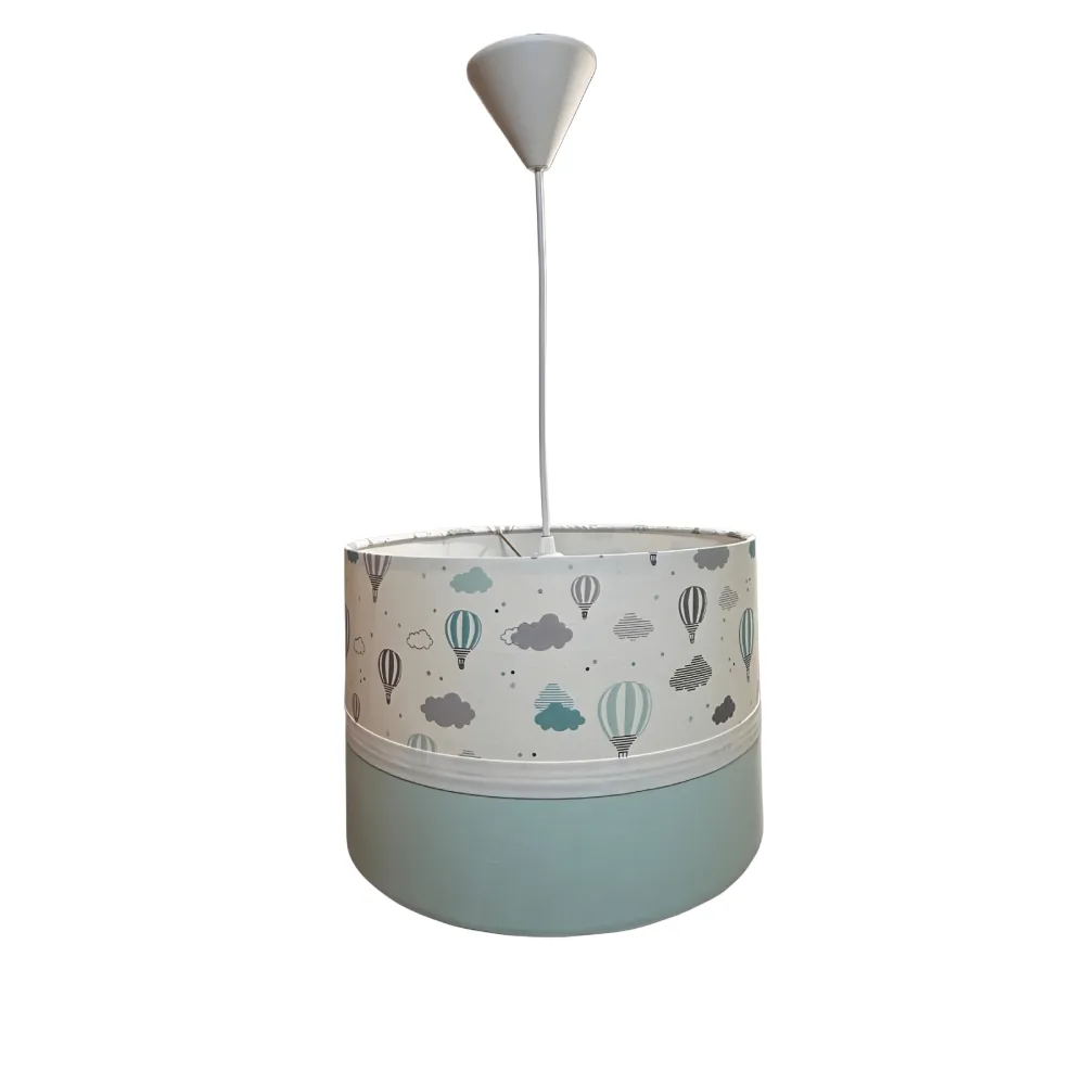 Αυτό το χειροποίητης αισθητικής φωτιστικό οροφής είναι σχεδιασμένο για να προσφέρει έναν γλυκό και καθησυχαστικό φωτισμό. Ο συνδυασμός του vintage μοτίβου με τα αερόστατα και της μονόχρωμης γαλάζιας βάσης δημιουργεί ένα οπτικό αποτέλεσμα που εμπνέει τη φαντασία και την ηρεμία.