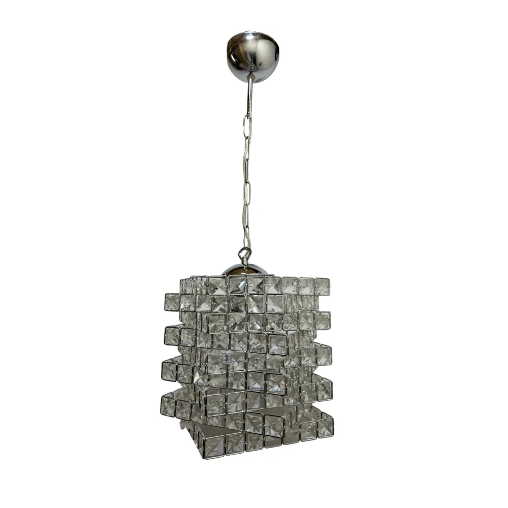 Αναβαθμίστε την αισθητική του χώρου σας με ένα φωτιστικό που παίζει με το φως και τις σκιές. Αυτό το κρεμαστό φωτιστικό διαθέτει έναν εντυπωσιακό σκελετό σε σχήμα κύβου, επενδυμένο με σειρές από πολυεδρικά κρύσταλλα υψηλής ποιότητας. Η γεωμετρική του διάταξη προσφέρει μια μοναδική διάχυση του φωτός, δημιουργώντας μια πολυτελή αλλά και σύγχρονη ατμόσφαιρα σε κάθε δωμάτιο